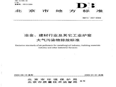 DB 11237-2004 冶金、建材行业及其它工业炉窑大气污染物排放标准