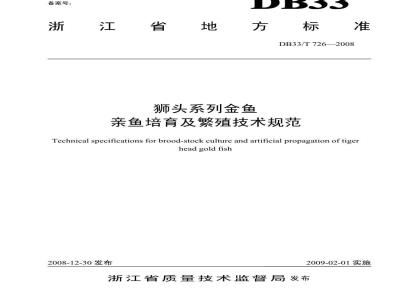 DB 33/T 726-2008 狮头系列金鱼亲鱼培育及繁殖技术规范