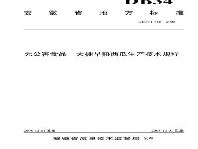 无公害食品大棚早熟西瓜生产技术规程DB34/T8582008