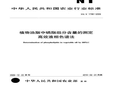 NY/T 1798-2009 植物油脂中磷脂组分含量的测定 高效液相色谱法