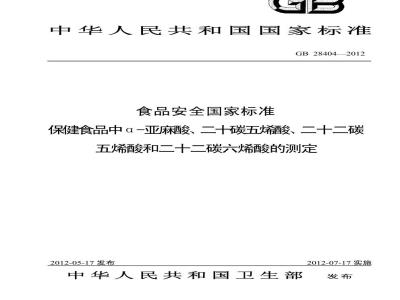 GB 28404-2012 保健食品中α-亚麻酸、二十碳五烯酸、二十二碳五烯酸和二十二碳六烯酸的测定