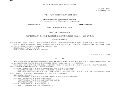 本标准适用于大型、中型水利水电工程编制初步设计阶段施工组织设计文件。大型、中型水利水电工程编制项目建议书、可行性研究报告和招、投标文件,及小型水利水电工程编制施工组织设计文件,可参照执行。 SL 303-2004 水利水电工程施工组织设计规范 SL303-2004 标准下载解压密码:www.bzxz.net