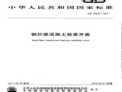 钢纤维混凝士检查井盖steel fiber reinforced manhole cover钢纤维混凝土检查井盖是配有钢筋骨架用钢纤维混凝土浇注成型的检查井盖。简称井盖,位于检查井井口顶部末固定部分,其功能是封闭检套非口,需要时能够开启。并盖与井座配合如图1所示。1