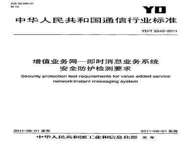 YD/T 2240-2011 增值业务网--即时消息业务系统安全防护检测要求
