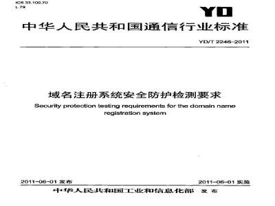 域名注册系统安全防护检测要求YD/T 2246-2011