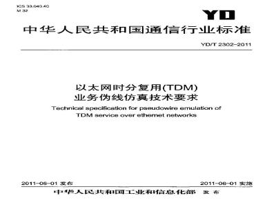 中文名称:以太网时分复用(TDM)业务伪线仿真技术要求