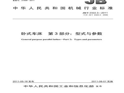 JB/T2322的本部分规定了卧式车床(普通级、精密级)的型式与主要参数。JB/T2322.3—2011