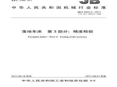 JB/T2523《落地车床》分为三个部分:-第1部分:技术条件;