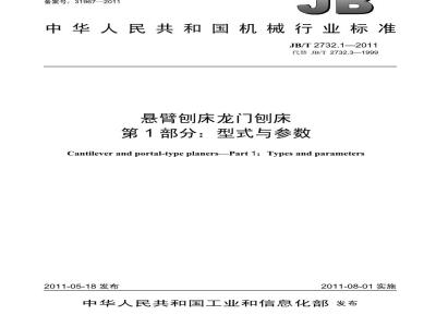 JB/T2732《悬臂刨床龙门刨床》分为三个部分:-第1部分:型式与参数;