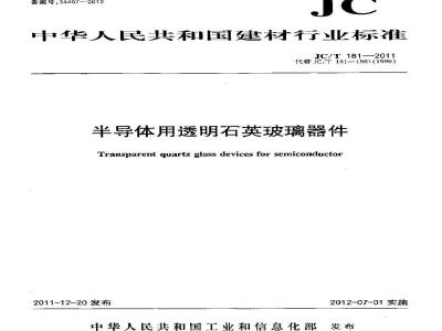 JC/T 181-2011 半导体用透明石英玻璃器件