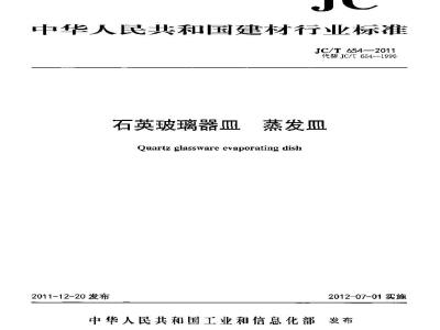 JC/T 654-2011 石英玻璃器皿 蒸发皿