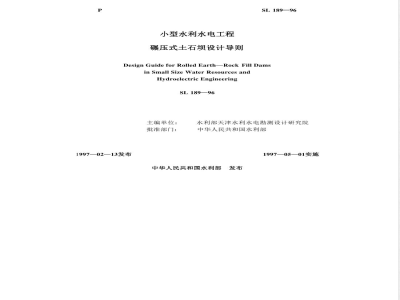 SL 189-1996 小型水利水电工程碾压式土石坝设计导则 SL 189-96 SL189-1996 标准下载解压密码:www.bzxz.net