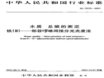 SL/T 272-2001 水质 总硒的测定 铁(II)——邻菲啰啉间接分光光度法 SL/T 272-2001 SL/T272-2001 标准下载解压密码:www.bzxz.net