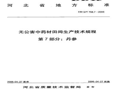 为了更加科学合理地预防和治理无公害中药材生产过程中病虫害的发生和危害,实现无公害中药材的安全生产,保证中药材产品的质量,保护我们人类的健康,特制订无公害中药材田间生产技术规程系列标准。DB13/T758无公害中药材田间生产技术规程》分为7个部分:一第1部分:白术;
