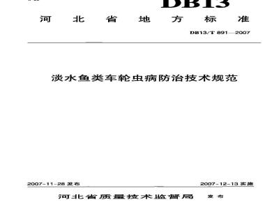 DB13/T 891-2007 淡水鱼类车轮虫病防治技术规范