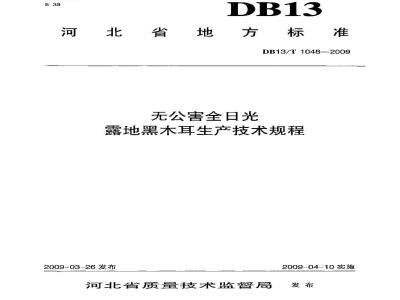 DB13/T 1048-2009 无公害全日光露地黑木耳生产技术规程