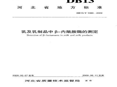 DB13/T 1080-2009 乳及乳制品中β-内酰胺酶的测定
