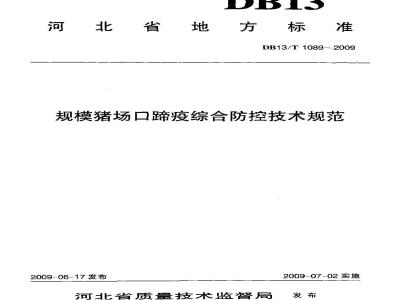 DB13/T 1089-2009 规模猪场口蹄疫综合防控技术规范