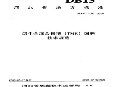 奶牛全混合三粮(TMR)饲养技术规范DB13/T1097-2009