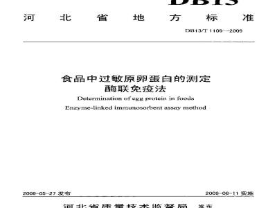 Determination of egg protein in foodsEnzyme-linked immunosorbent assay method2009-05-27发布