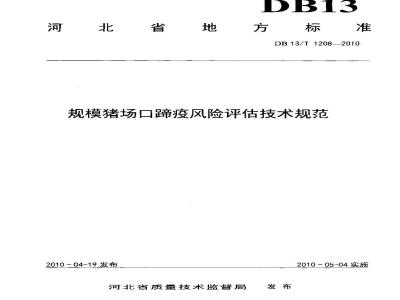 DB13/T 1208-2010 规模猪场口蹄疫风险评估技术规范
