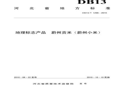 DB13/T 1298-2010 地理标志产品蔚州贡米(蔚州小米)