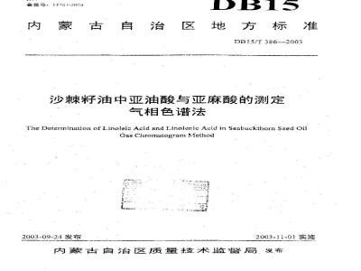 DB15/T 386-2003 沙棘籽油中亚油酸与亚麻酸的测定 气相色谱法