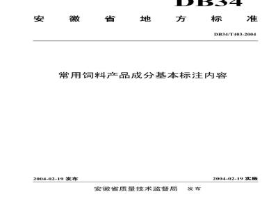 DB34/T 403-2004 常用饲料产品成分基本标注内容
