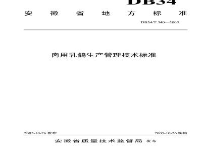 DB34/T 540-2005 肉用乳鸽生产管理技术标准