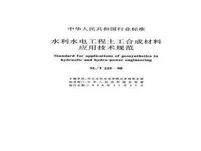 中文名称:水利水电工程土工合成材料应用技术规范 SL/T 225-98
