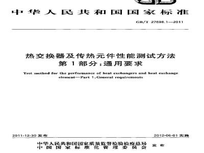 GB/T27698《热交换器及传热元件性能测试方法》分为8个部分:第1部分:通用要求: