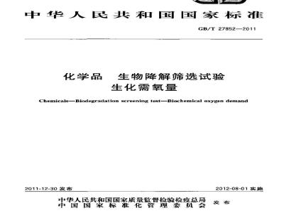 GB/T 27852-2011 化学品 生物降解筛选试验 生化需氧量