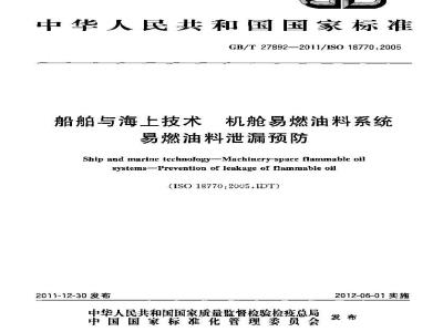 GB/T27892-—2011/JS018770:2005船舶与海上技术机舱易燃油料系统易燃油料泄漏预防