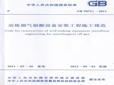 治炼烟气制酸设备安装工程施工规范Code for construction of acid-making equipment installtionengineering for metallurgical off-gas2011-07-26
