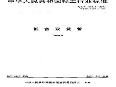 本标准证对QB/T1658.5一1992巴松的汀,今次能订排收了以者译台名的标准名称本标准其他内客的修改是因QB/T1658.1一2002《需管气鸣乐器通用技术条件》测修订再作出的。本标准月中国轻「业合会出。