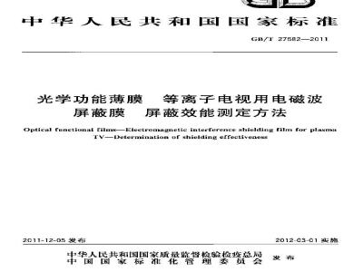 中文名称:光学功能薄膜 等离子电视用电磁波屏蔽膜 屏蔽效能测定方法