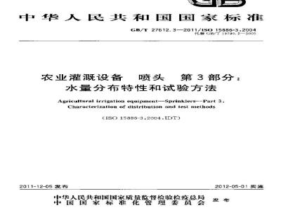 中文名称:农业灌溉设备 喷头 第3部分:水量分布特性和试验方法