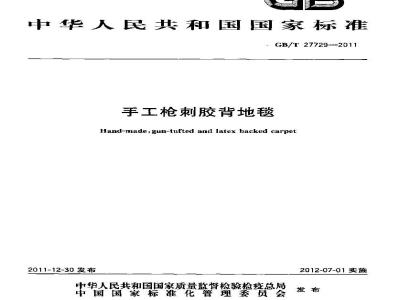 本标准按照GB/T1.1-2009给出的规则起草。本标准是对QB/T1943—1994《手工簇绒羊毛胶背地毯》的修订。本标准由中国轻工业联合会提出。本标准由全国地穗标准化技术委员会(SAC/TC150)归口。本标准负责起草单位:中国工艺美术协会地毯专业委员会。GB/T 27729—2011