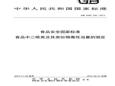 食品中二嗯英及其类似物毒性当量的测定GB5009.205—2013