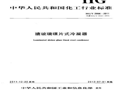 本标准代荠HG/T2056—200M摘玻璃碟片式冷凝器3。本标准与HG/T2056一2004相比主要变化如下;取消了器内压力小于等于0.25MPa的品种;对部分参数进行丁修订。