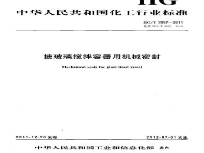 本标准代替HG/1'2057--2003《携玻璃搅拌容器用机械封》。本标推与HG/T20572003相比主要变化如下:最人揽拌轴(或轴套)外径山110mm提高到160mm;HG/T2057—2011