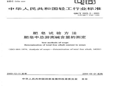 本标准是QB/T2623《肥皂试验方法》系列标准中的第二项标准。该系列标准由八项标准成,各标准名称如下:wwW.bzxz.Net