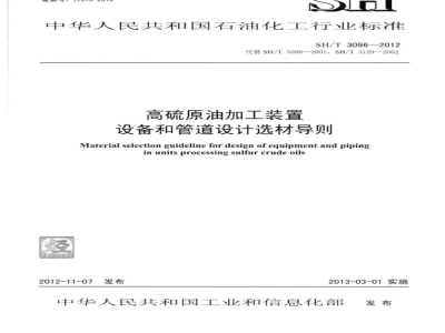 SH/T 3096-2012 高硫原油加工装置设备和管道设计选材导则