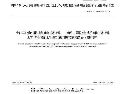Food contact materials for export-Paper,regenerated fiber materials-Determination of 37 organochlorinepesticides residues2011-05-31发布
