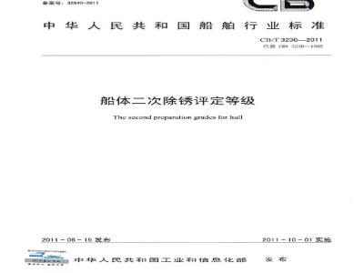 本标准代替CB3230一1985《船体二次除锈评定等级。本标准与CB3230一1985相比,主要有下列变化CB/T32302011