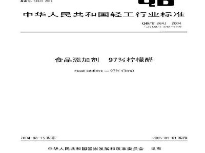 本标准规定了食品添加剂97%柠檬醛的要求、试验方法、检验规则与标志、包装、运输、贮存。本标准适用于对由山苍子油为原料,经单离制得的97%柠檬醛的质量进行分析评价。 QB/T 2643-2004 食品添加剂 97%柠檬醛 QB/T2643-2004 标准下载解压密码:www.bzxz.net