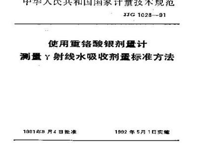 JJG 1028-1991 使用重铬酸银剂量计测量γ射线水吸收剂量标准方法