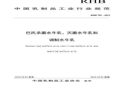 RHB 702-2012 巴氏杀菌水牛乳、灭菌水牛乳和调制水牛乳