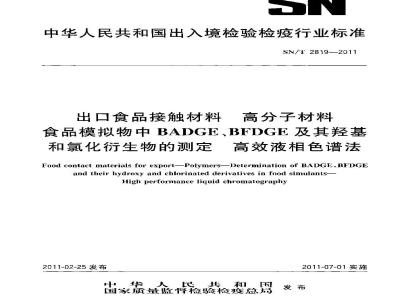 Food contact materials for export-Polymers-Determination of BADGE, BFDGEand their hydroxy and chlorinated derivalives in food simulants-High performance liguid chromatography2011-02-25 发布