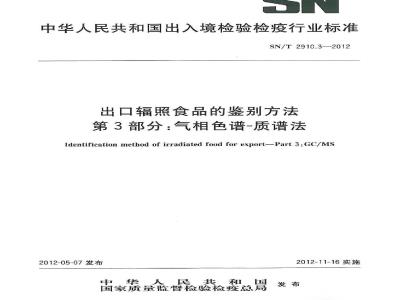 Identification method of irradiated food for export--Part 3:GC/MS2012-05-07发布